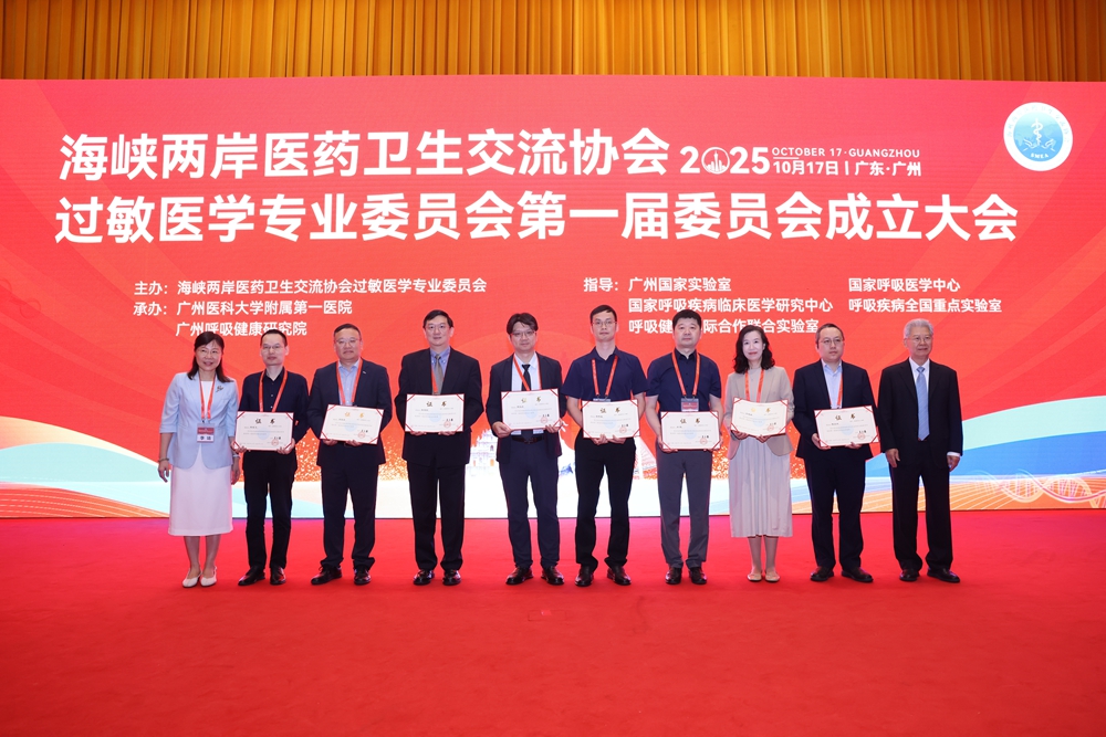 2025年10月17日,2025海峽兩岸醫藥衛生交流協會過敏醫學專業委員會成立大會暨第一次學術會議在廣州舉辦。本次會議由海峽兩岸醫藥衛生交流協會主辦,廣州醫科大學附屬第一醫院、廣州呼吸健康研究院承辦。